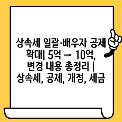 상속세 일괄·배우자 공제 확대| 5억 → 10억, 변경 내용 총정리 | 상속세, 공제, 개정, 세금