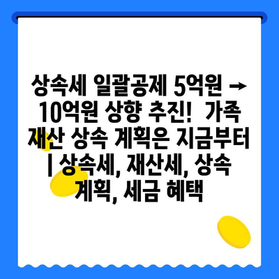 상속세 일괄공제 5억원 → 10억원 상향 추진! 가족 재산 상속 계획은 지금부터 | 상속세, 재산세, 상속 계획, 세금 혜택