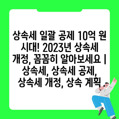 ✅ 상속세 일괄 공제 10억 원! 나에게 적용될까요? 2023년 개정된 상속세, 꼼꼼히 따져보고 절세 전략 세우세요!