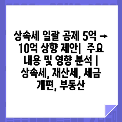 상속세 일괄 공제 5억 → 10억 상향 제안| 주요 내용 및 영향 분석 | 상속세, 재산세, 세금 개편, 부동산