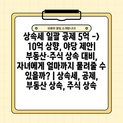 상속세 일괄 공제 5억 -> 10억 상향, 야당 제안|  부동산·주식 상속 대비, 자녀에게 얼마까지 물려줄 수 있을까?<br/> | 상속세, 공제, 부동산 상속, 주식 상속