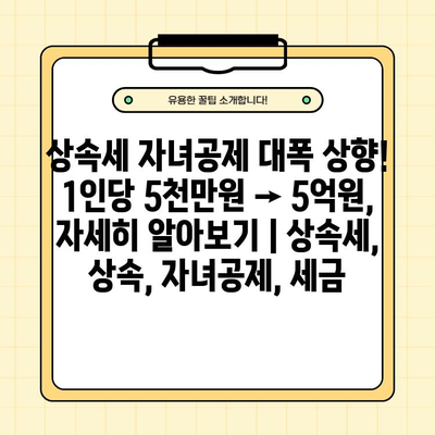 상속세 자녀공제 대폭 상향! 1인당 5천만원 → 5억원, 자세히 알아보기 | 상속세, 상속, 자녀공제, 세금