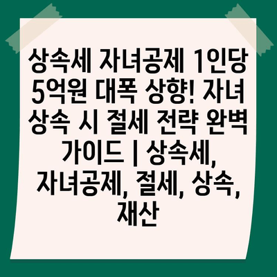 상속세 자녀공제 1인당 5억원 대폭 상향! 자녀 상속 시 절세 전략 완벽 가이드 | 상속세, 자녀공제, 절세, 상속, 재산