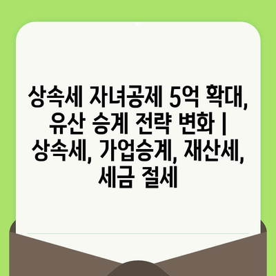 상속세 자녀공제 5억 확대, 유산 승계 전략 변화 | 상속세, 가업승계, 재산세, 세금 절세