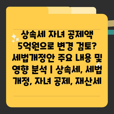 상속세 자녀 공제액 5억원으로 변경 검토? 세법개정안 주요 내용 및 영향 분석 | 상속세, 세법 개정, 자녀 공제, 재산세