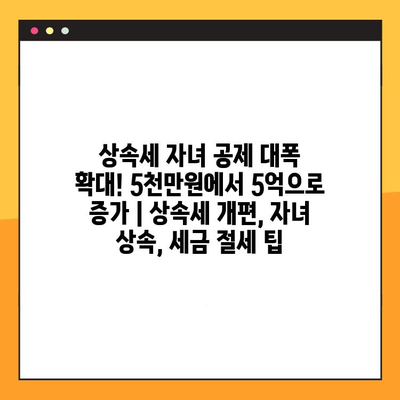 상속세 자녀 공제 대폭 확대! 5천만원에서 5억으로 증가 | 상속세 개편, 자녀 상속, 세금 절세 팁