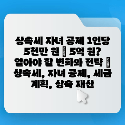 ✅ 상속세 자녀 공제 5억원, 정말 가능할까요? 자녀 공제 최대 활용 전략 지금 바로 확인하세요!