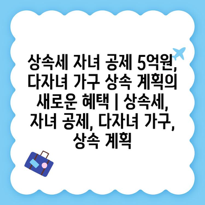 상속세 자녀 공제 5억원, 다자녀 가구 상속 계획의 새로운 혜택 | 상속세, 자녀 공제, 다자녀 가구, 상속 계획 에 대해 자주 묻는 질문 TOP 5