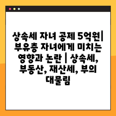 상속세 자녀 공제 5억원| 부유층 자녀에게 미치는 영향과 논란 | 상속세, 부동산, 재산세, 부의 대물림
