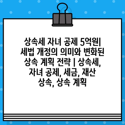 상속세 자녀 공제 5억원| 세법 개정의 의미와 변화된 상속 계획 전략 | 상속세, 자녀 공제, 세금, 재산 상속, 상속 계획 에 대해 자주 묻는 질문 TOP 5