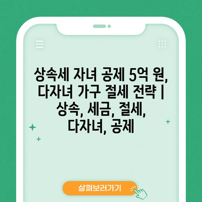 상속세 자녀 공제 5억원은 다자녀 가구에게 상속세 부담을 크게 줄여주는 핵심적인 절세 방안입니다.