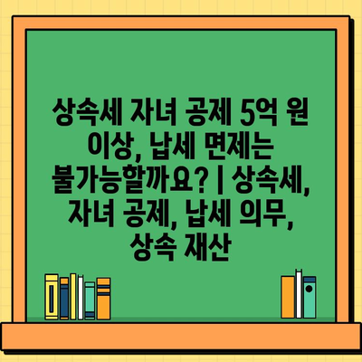 ✅ 상속세 자녀 공제 5억 원 이상, 납세 면제는 불가능할까요? 궁금증 해결! 납세 의무, 절세 전략, 성공 사례까지 알아보세요.