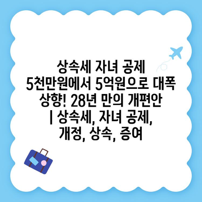 상속세 자녀 공제 5천만원에서 5억원으로 대폭 상향! 28년 만의 개편안 | 상속세, 자녀 공제, 개정, 상속, 증여