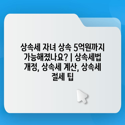 상속세 자녀 상속 5억원까지 가능해졌나요? | 상속세법 개정, 상속세 계산, 상속세 절세 팁