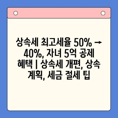 상속세 최고세율 50% → 40%, 자녀 5억 공제 혜택 | 상속세 개편, 상속 계획, 세금 절세 팁