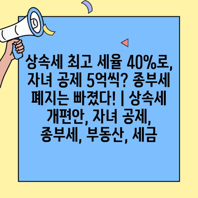 상속세 최고 세율 40%로 인상, 자녀 공제 5억 확대