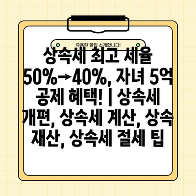 상속세 최고 세율 50%→40%, 자녀 5억 공제 혜택! | 상속세 개편, 상속세 계산, 상속 재산, 상속세 절세 팁