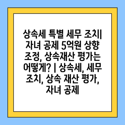 상속세 특별 세무 조치, 자녀 공제 5억원 상향 조정 등 변화된 내용을 자세히 알아보고, 상속 재산 평가 방법까지 확인하세요!