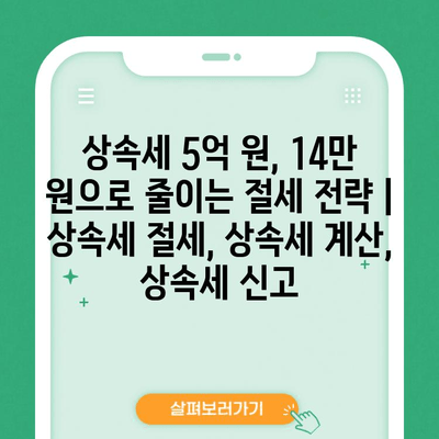 상속세 5억 원, 14만 원으로 줄이는 절세 전략 | 상속세 절세, 상속세 계산, 상속세 신고