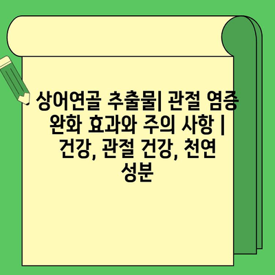 상어연골 추출물 | 관절 염증 완화 효과와 주의 사항 | 건강, 관절 건강, 천연 성분