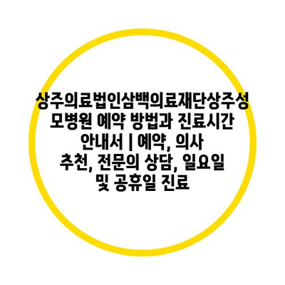상주의료법인삼백의료재단상주성모병원 예약 방법과 진료시간 공지서 | 예약, 의사 추천, 전연락 상담, 일요일 및 공휴일 진료 에 대해 자주 묻는 질문 TOP 5