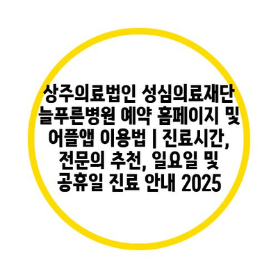 상주의료법인 성심의료재단 늘푸른병원 예약 홈페이지 및 어플앱 이용법 | 진료시간, 전연락 추천, 일요일 및 공휴일 진료 공지 2025 에 대해 자주 묻는 질문 TOP 5