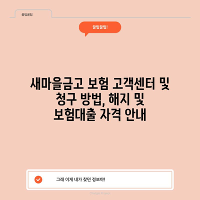 새마을금고 보험 고객센터 및 청구 방법, 해지 및 보험대출 자격 안내