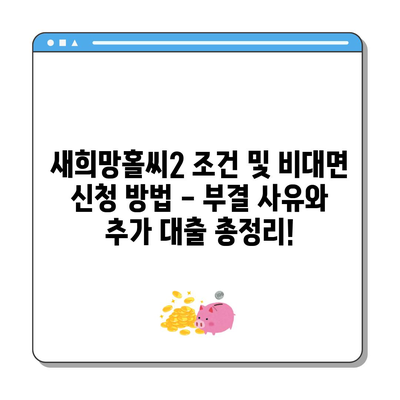새희망홀씨2의 조건, 비대면 신청방법 및 부결사유에 대해 알아보세요. 추가 대출 옵션도 자세히 설명합니다.