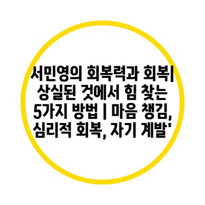 서민영의 회복력과 회복| 상실된 것에서 힘 찾는 5가지 방법 | 마음 챙김, 심리적 회복, 자기 계발에 대한 글입니다.