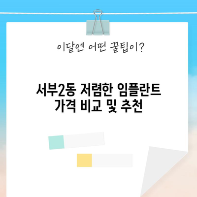 💡 서부2동 임플란트 시술 가격 비교 사이트에서 자세히 알아보세요. 💡
