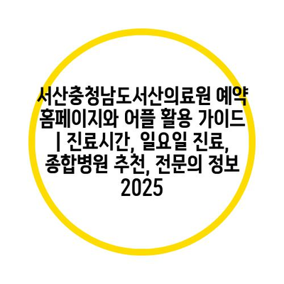 서산충청남도서산의료원 예약 홈페이지와 어플 활용 설명서 | 진료시간, 일요일 진료, 종합병원 추천, 전연락 정보 2025 에 대해 자주 묻는 질문 TOP 5