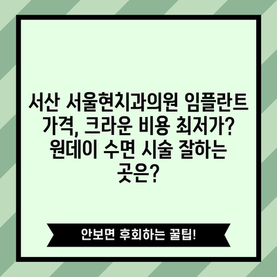 💡 서산 서울현치과의원 임플란트 및 크라운 비용을 알아보세요. 💡