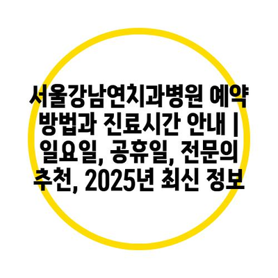 서울강남연치과병원 예약 방법과 진료시간 공지 | 일요일, 공휴일, 전연락 추천, 2025년 최신 정보 에 대해 자주 묻는 질문 TOP 5