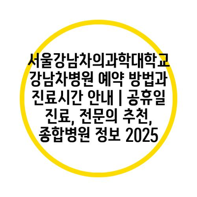 서울강남차의과학대학교 강남차병원 예약 방법과 진료시간 안내 | 공휴일 진료, 전문의 추천, 종합병원 정보 2025