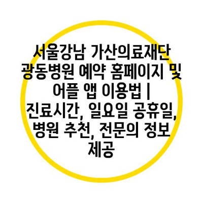 ✅ 서울강남 가산의료재단 광동병원 예약 방법을 지금 알아보세요!