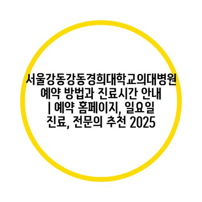 서울강동강동경희대학교의대병원 예약 방법과 진료시간 공지 | 예약 홈페이지, 일요일 진료, 전연락 추천 2025 에 대해 자주 묻는 질문 TOP 5