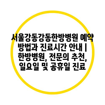 서울강동강동한방병원 예약 방법과 진료시간 공지 | 한방병원, 전연락 추천, 일요일 및 공휴일 진료에 대해 자주 묻는 질문 TOP 5