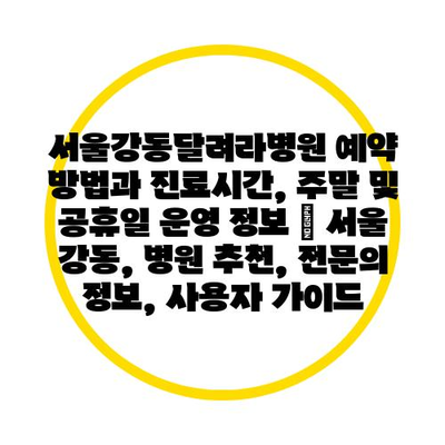 주말 및 공휴일 운영에 대한 사항도 중요합니다. 서울강동달려라병원은 토요일에도 진료를 진행하나, 정확한 진료 과목은 상황에 따라 달라질 수 있습니다.