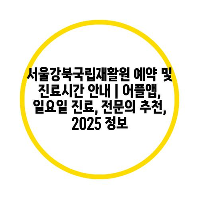 서울강북국립재활원 예약 및 진료시간 안내 | 어플앱, 일요일 진료, 전문의 추천, 2025 정보