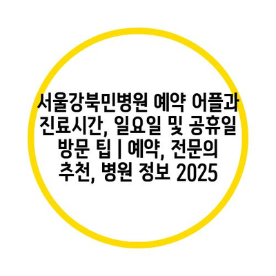 서울강북민병원 예약 어플과 진료시간, 일요일 및 공휴일 방문 팁 | 예약, 전문의 추천, 병원 정보 2025