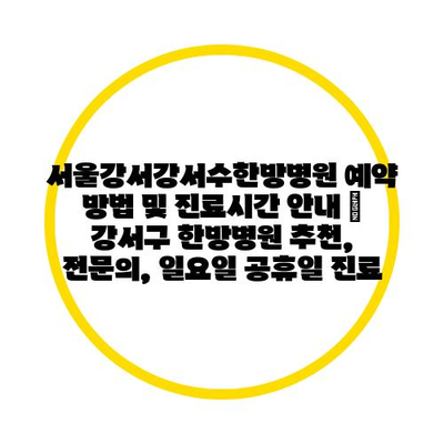 ✅ 서울강서강서수한방병원의 예약 방법과 진료 시간에 대한 모든 정보를 알아보세요.