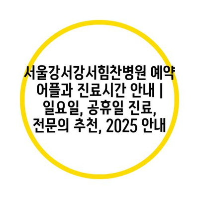 서울강서강서힘찬병원 예약 어플과 진료시간 안내 | 일요일, 공휴일 진료, 전문의 추천, 2025 안내