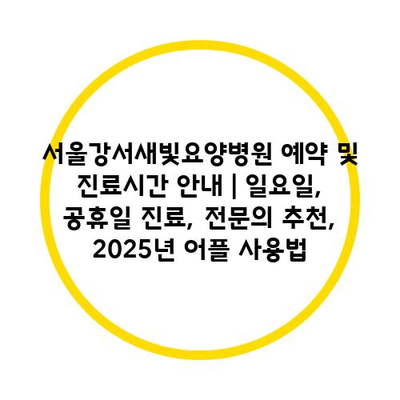 서울강서새빛요양병원 예약 및 진료시간 공지 | 일요일, 공휴일 진료, 전연락 추천, 2025년 어플 사용법에 대해 자주 묻는 질문 TOP 5