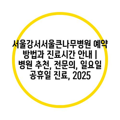 서울강서서울큰나무병원 예약 방법과 진료시간 공지 | 병원 추천, 전연락, 일요일 공휴일 진료, 2025 에 대해 자주 묻는 질문 TOP 5