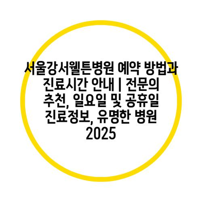 서울강서웰튼병원 예약 방법과 진료시간 안내 | 전문의 추천, 일요일 및 공휴일 진료정보, 유명한 병원 2025