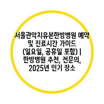 서울관악치유본한방병원 예약 및 진료시간 가이드 (일요일, 공휴일 포함) | 한방병원 추천, 전문의, 2025년 인기 장소