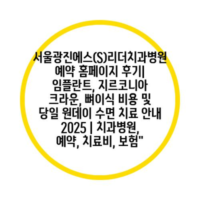 서울광진에스(S)리더치과병원 예약 홈페이지 후기| 임플란트, 지르코니아 크라운, 뼈이식 비용 및 당일 원데이 수면 치료 공지 2025 | 치과병원, 예약, 치료비, 보험” 에 대해 자주 묻는 질문 TOP 5