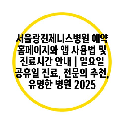 서울광진제니스병원 예약 홈페이지와 앱 사용법 및 진료시간 공지 | 일요일 공휴일 진료, 전연락 추천, 유명한 병원 2025에 대해 알아보겠습니다.