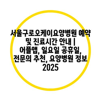 서울구로오케이요양병원 예약 및 진료시간 공지 | 어플앱, 일요일 공휴일, 전연락 추천, 요양병원 정보 2025 에 대해 자주 묻는 질문 TOP 5