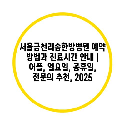 서울금천리솜한방병원 예약 방법과 진료시간 공지 | 어플, 일요일, 공휴일, 전연락 추천, 2025 에 대해 자주 묻는 질문 TOP 5